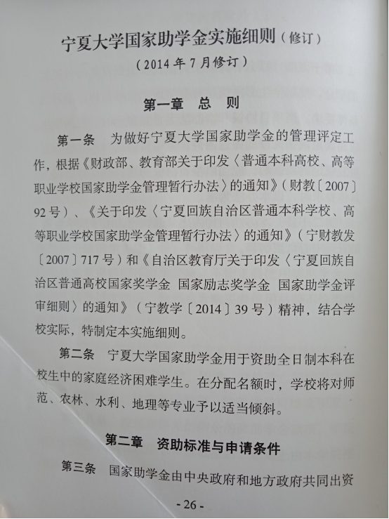 宁夏大学国家助学金、国家奖学金实施细则(2014年修订)